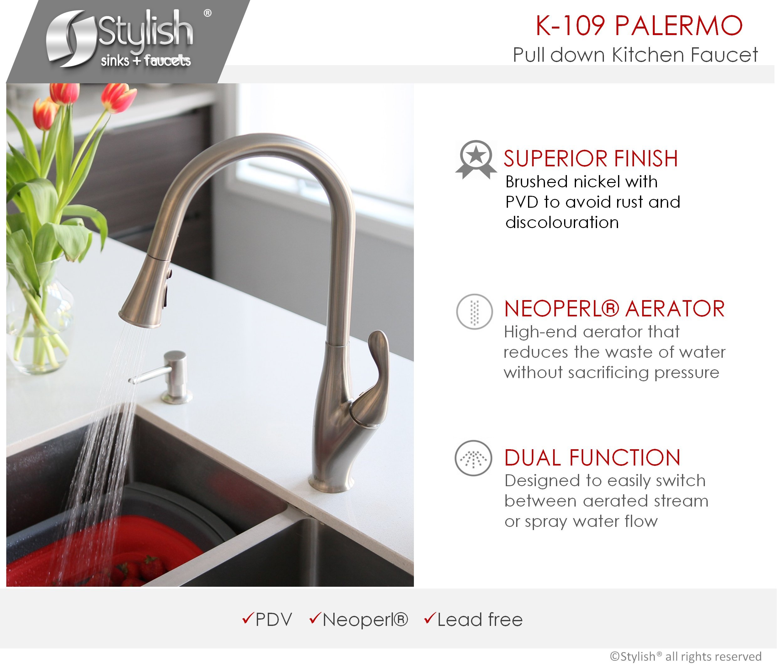 Stylish Kitchen Faucet One Handle Brushed Nickel Finish K108b Toscana Pull Down Ceramic Cartridge Touch On Kitchen Sink Faucets Kitchen Fixtures Urbytus Com from images-na.ssl-images-amazon.com This list is made based on customer ratings and reviews and the highest quality faucets. We review the best products, so you can rest but your quest of buying best kitchen faucet becomes difficult when there are too many brands depending upon your cleaning needs, select the best faucet with sprayer. American standard has been producing plumbing goods since 2007, which doesn't seem to be a very long time, but it has managed to grab. For better usage, a powerful integrated magnet positions the spray wand holds it in place after use. They look good, are easy to clean and maintain and most importantly the price is very reasonable. The cartridge has passed through 500,000 cycle. 10 best kitchen faucets reviews of 2022. Best kitchen sink faucets consumer reports: